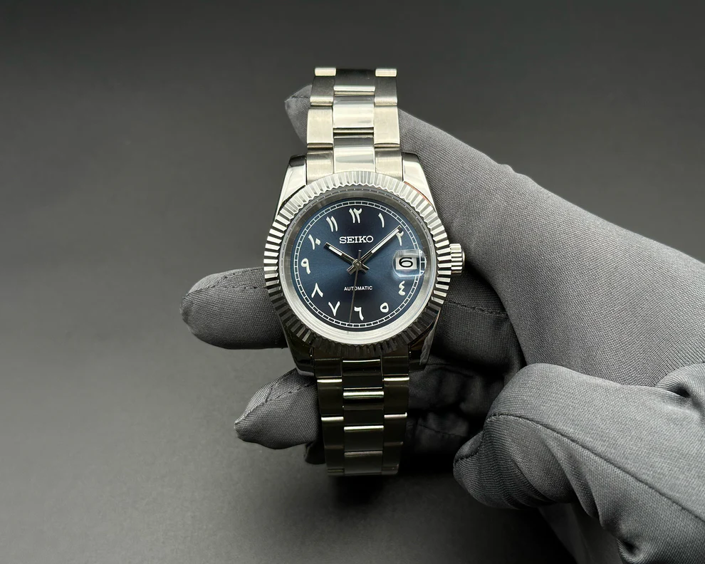 Découvrez la Seiko Arabic Dial, une montre Seiko Mod qui capture l’essence de l’élégance et la sophistication. Dotée d’un cadran bleu gris et des chiffres arabes distinctifs, cette montre reflète un goût impeccable et un sens du style qui transcende les modes passagères.