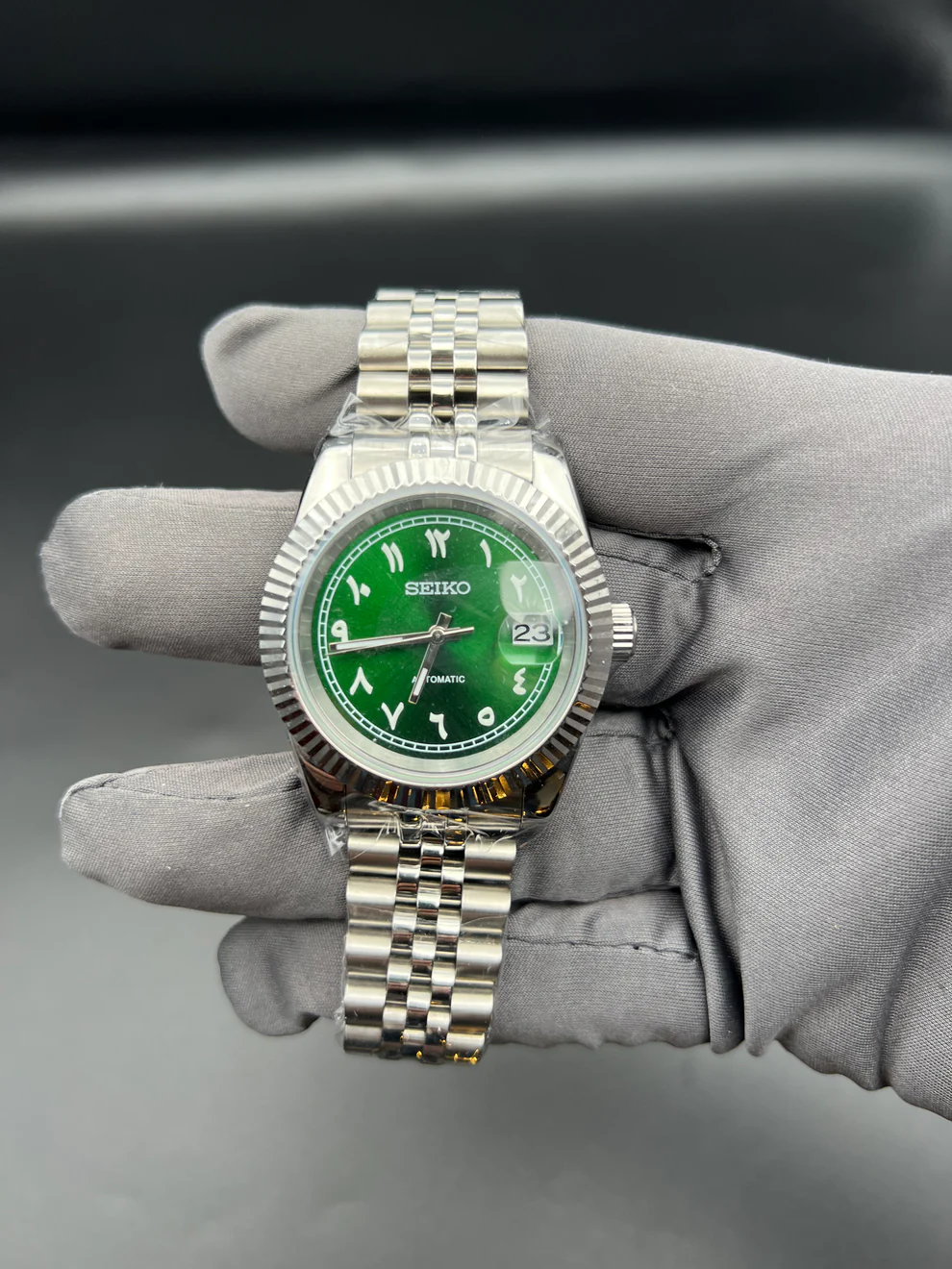 Découvrez la Seiko Arabic Dial, une montre Seiko Mod qui capture l’essence de l’élégance et la sophistication. Dotée d’un cadran vert et des chiffres arabes distinctifs, cette montre reflète un goût impeccable et un sens du style qui transcende les modes passagères.